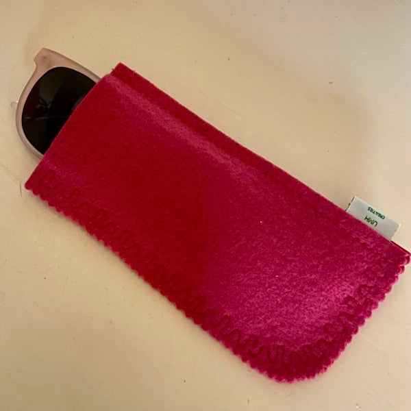 BRILHOESJES Unieke handgemaakte set! Brilmapje met magneetsluiting en een bijpassend insteekhoesje. Deze set is van vilt in de kleur fuchsia gemaakt.