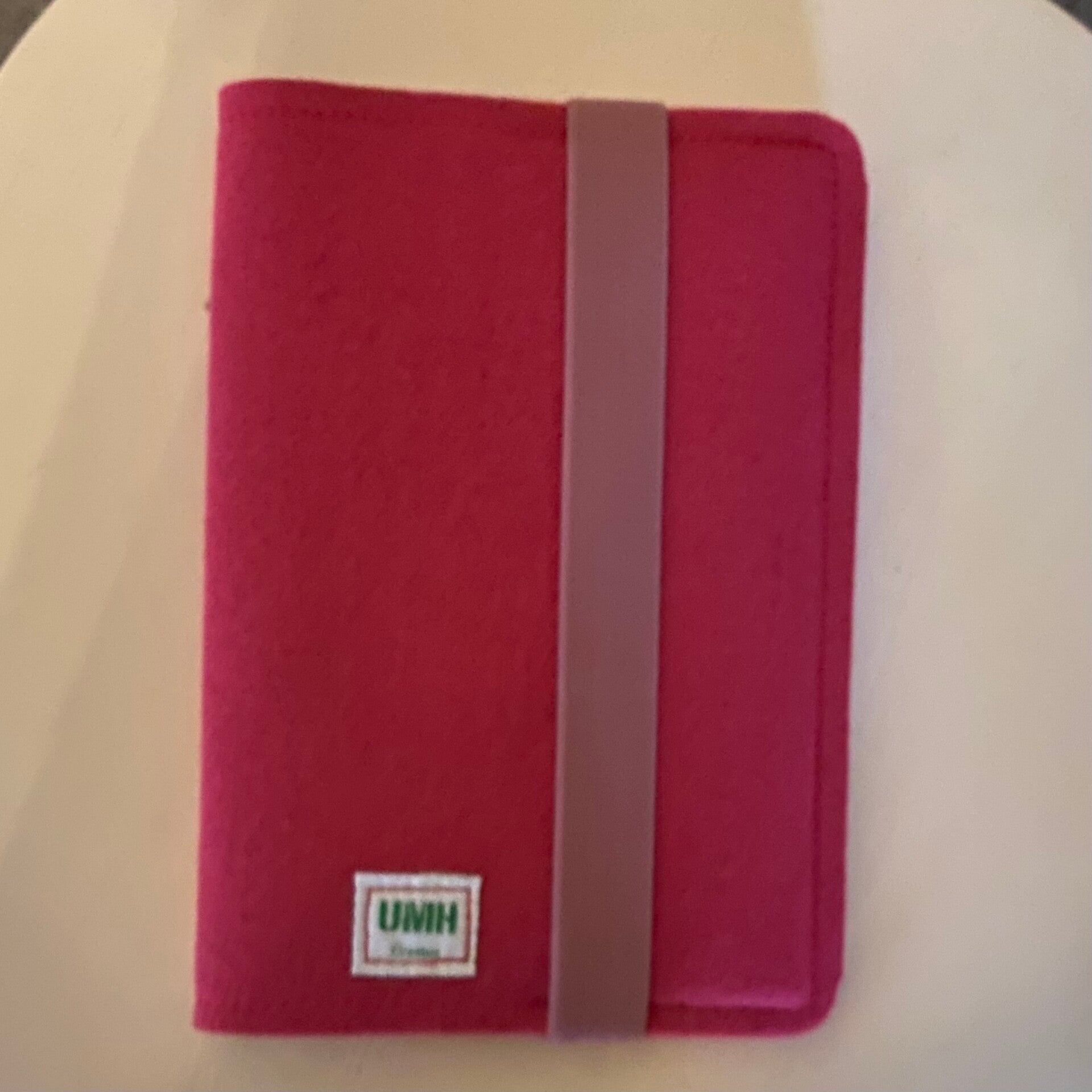 A5 Notebook met 'n vilten fuchsia omslag.