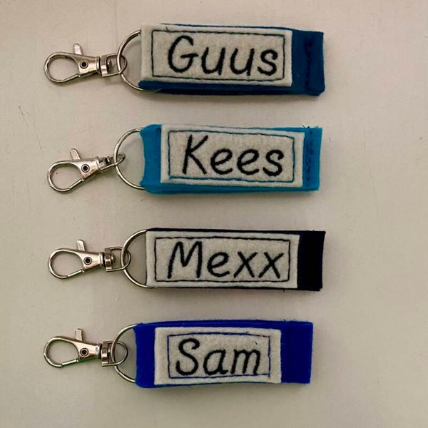 NIEUW, een etui of sleutelhanger met geborduurde naam. Hou hierbij rekening met een eventuele langere levertijd